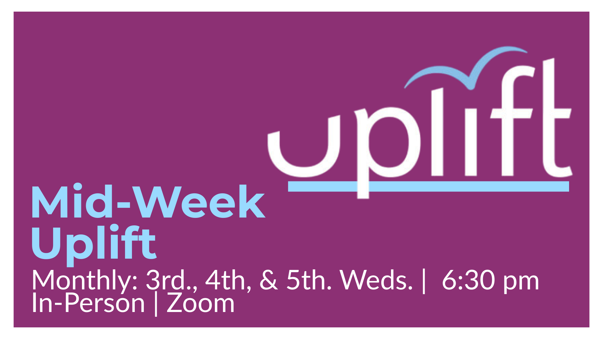 Mid-Week Uplift – Last Two Wednesdays of the month at 6:30 PM
